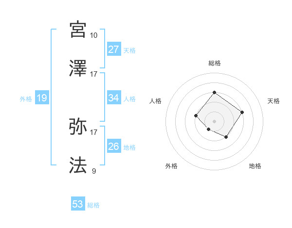 宮澤 弥法さんの総格は53画の3点!