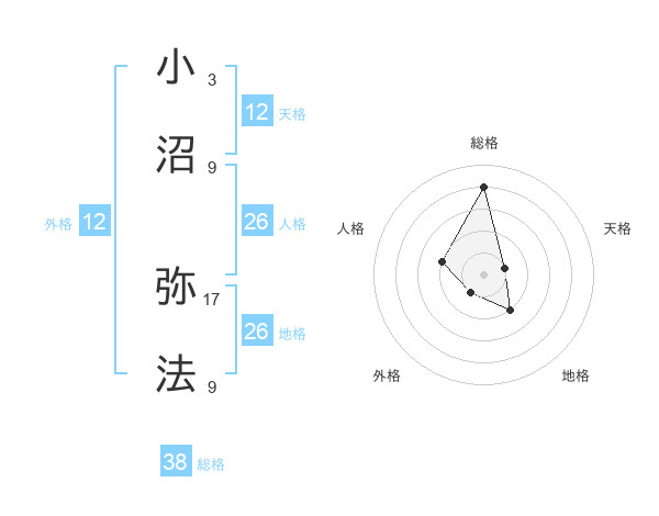 小沼 弥法さんを姓名の画数から五運を鑑定