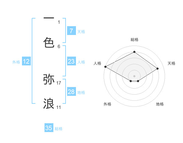 一色 弥浪さんを姓名の画数から五運を鑑定