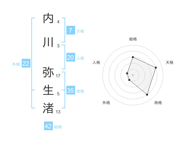 内川 弥生渚さんを姓名の画数から五運を鑑定
