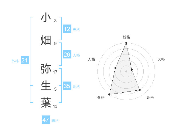 小畑 弥生葉さんを姓名の画数から五運を鑑定