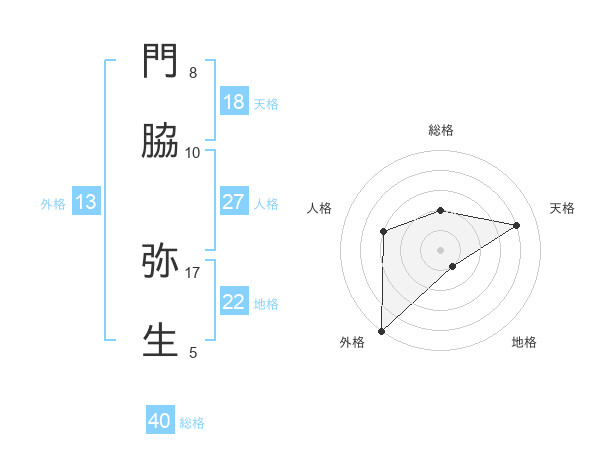 門脇 弥生さんの天格は18画の4点!