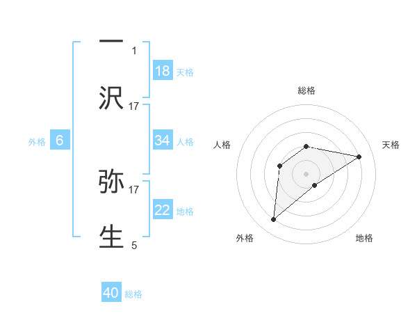 一沢 弥生さんの天格は18画の4点!