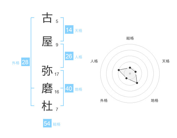 古屋 弥磨杜さんの総格は54画の1点!