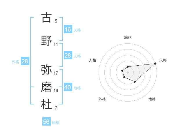 古野 弥磨杜さんを姓名の画数から五運を鑑定