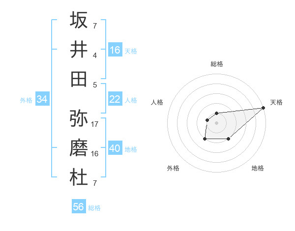 坂井田 弥磨杜さんを姓名の画数から五運を鑑定