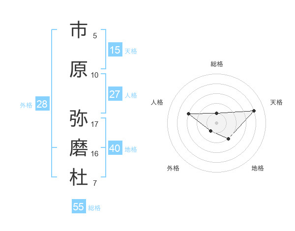 市原 弥磨杜さんの総格は55画の1点!