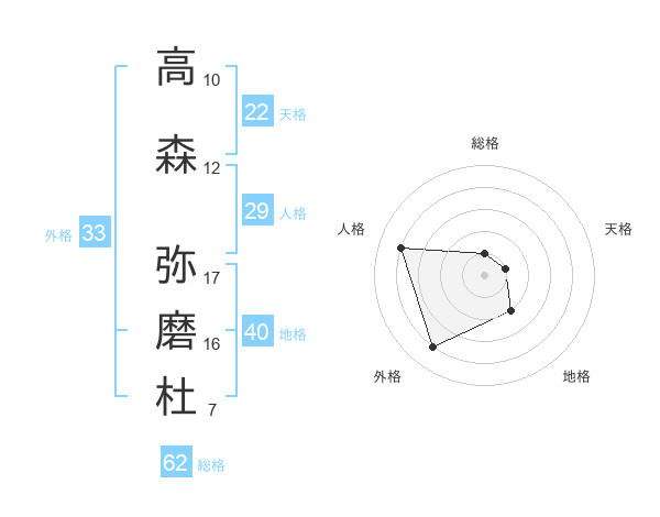 高森 弥磨杜さんを姓名の画数から五運を鑑定