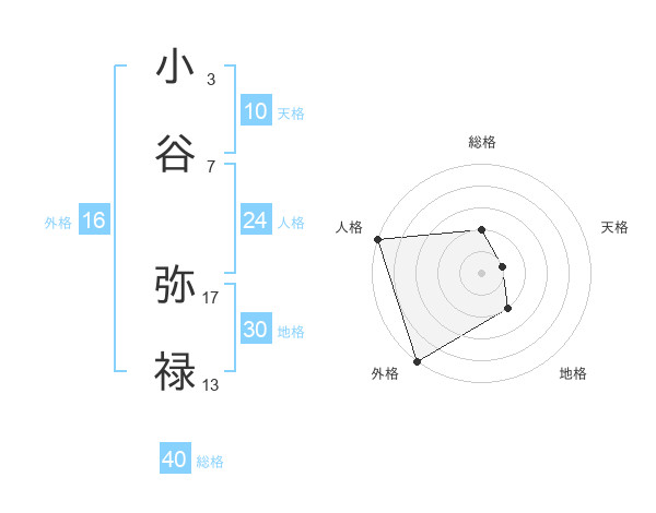 小谷 弥禄さんを姓名の画数から五運を鑑定