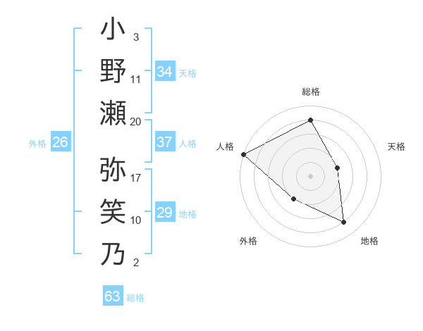小野瀬 弥笑乃さんの人格は37画の5点!