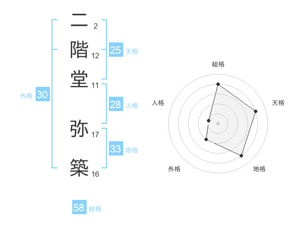 二階堂 弥築さんを姓名の画数から五運を鑑定