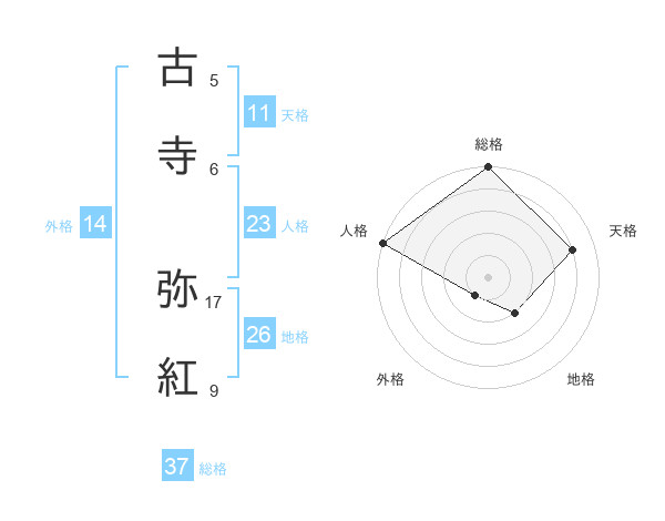 古寺 弥紅さんの総格は37画の5点!