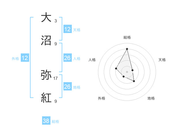 大沼 弥紅さんを姓名の画数から五運を鑑定