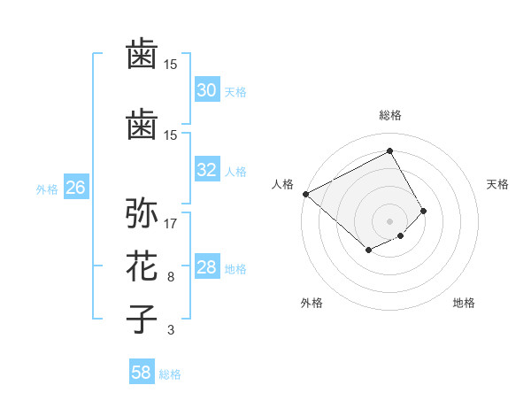 歯歯 弥花子さんの外格は26画の2点!