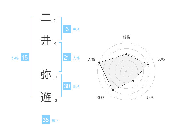 二井 弥遊さんの天格は6画の4点!
