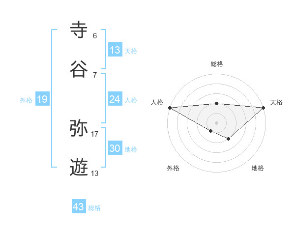 寺谷 弥遊さんの天格は13画の5点!