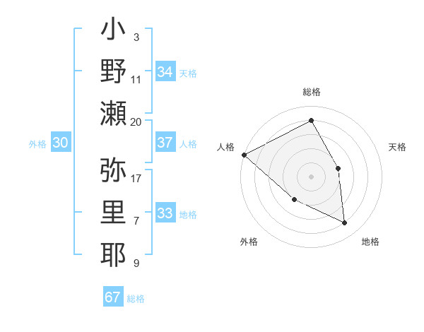 小野瀬 弥里耶さんを姓名の画数から五運を鑑定