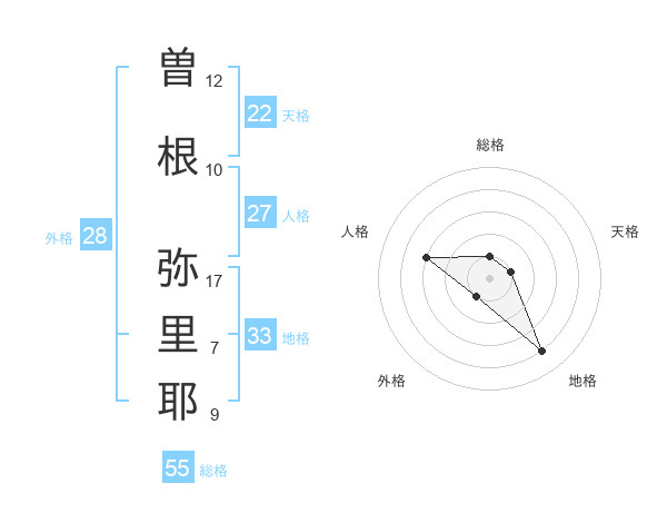 曽根 弥里耶さんの天格は22画の1点!