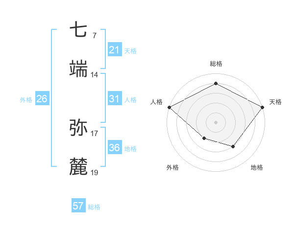 七端 弥麓さんを姓名の画数から五運を鑑定