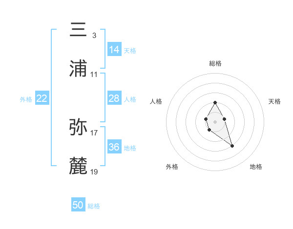 三浦 弥麓さんの総格は50画の2点!