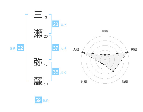 三瀬 弥麓さんの天格は23画の5点!