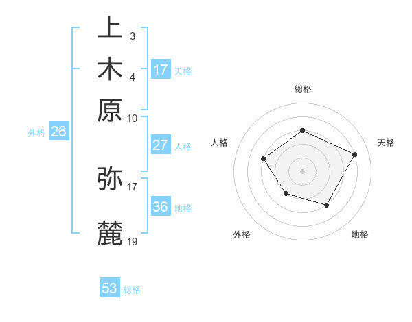 上木原 弥麓さんの天格は17画の4点!
