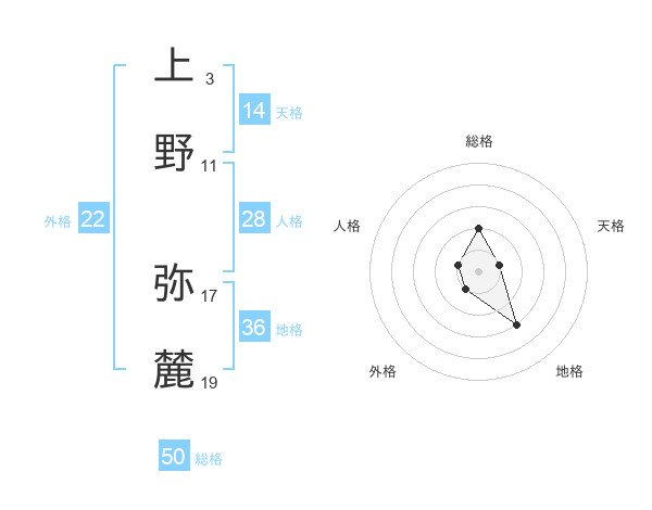 上野 弥麓さんを姓名の画数から五運を鑑定