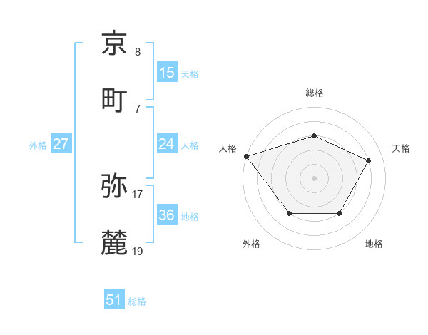 京町 弥麓さんの総格は51画の3点!