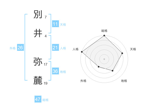 別井 弥麓さんを姓名の画数から五運を鑑定