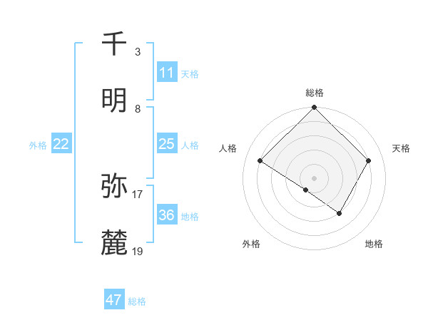 千明 弥麓さんを姓名の画数から五運を鑑定