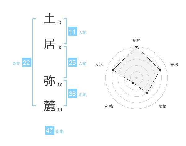 土居 弥麓さんを姓名の画数から五運を鑑定