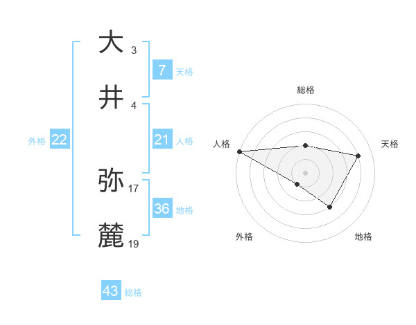 大井 弥麓さんを姓名の画数から五運を鑑定