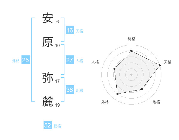 安原 弥麓さんの総格は52画の4点!