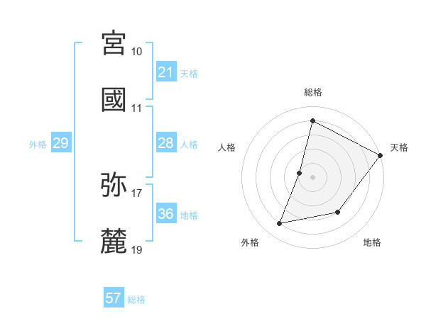 宮國 弥麓さんの総格は57画の4点!