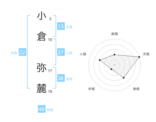 小倉 弥麓さんを姓名の画数から五運を鑑定