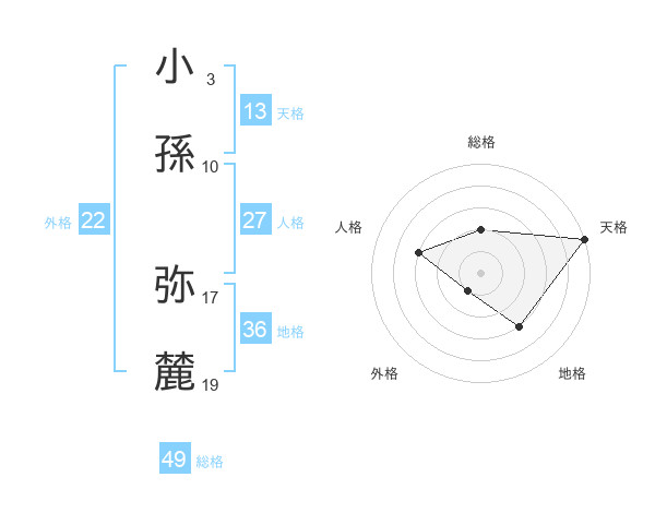 小孫 弥麓さんを姓名の画数から五運を鑑定