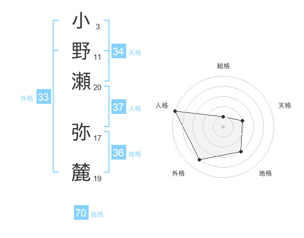 小野瀬 弥麓さんを姓名の画数から五運を鑑定