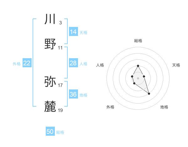 川野 弥麓さんの総格は50画の2点!