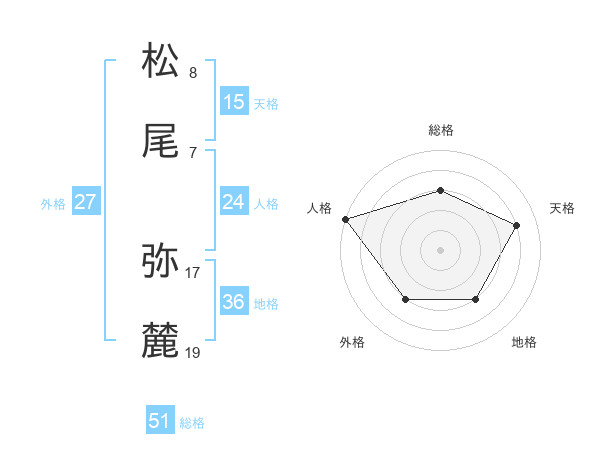 松尾 弥麓さんの総格は51画の3点!