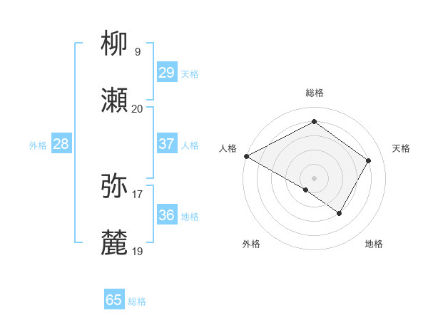 柳瀬 弥麓さんの総格は65画の4点!