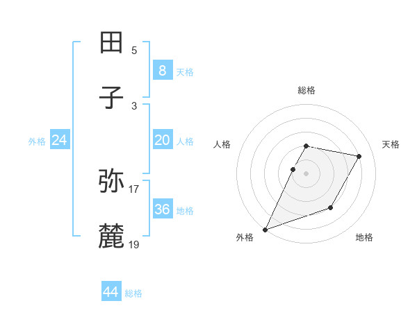 田子 弥麓さんの総格は44画の2点!