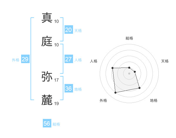 真庭 弥麓さんの総格は56画の1点!