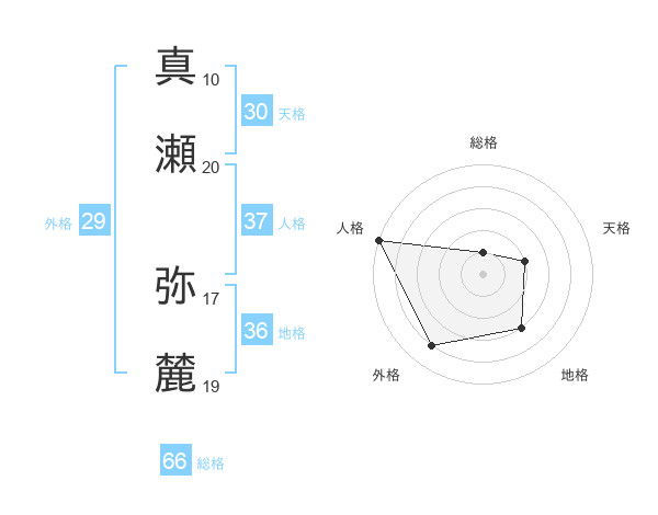 真瀬 弥麓さんの総格は66画の1点!