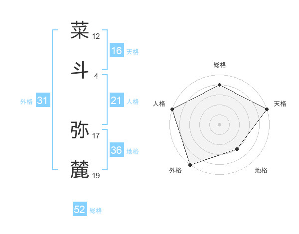 菜斗 弥麓さんの総格は52画の4点!