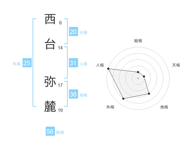 西台 弥麓さんを姓名の画数から五運を鑑定