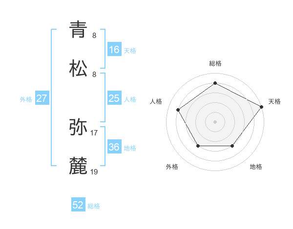 青松 弥麓さんの総格は52画の4点!