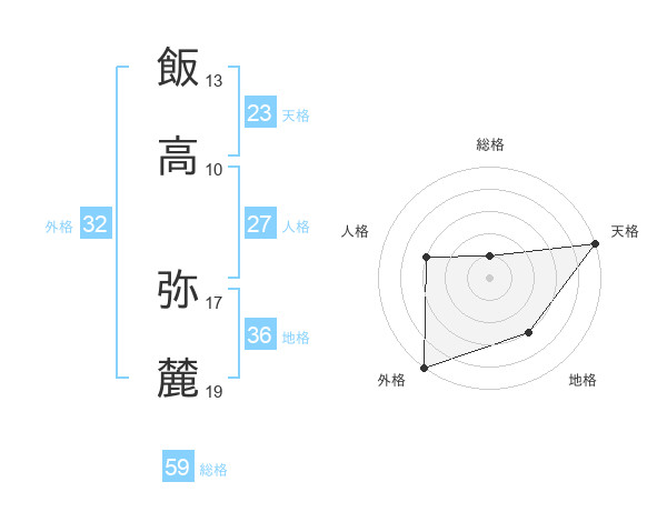 飯高 弥麓さんの総格は59画の1点!