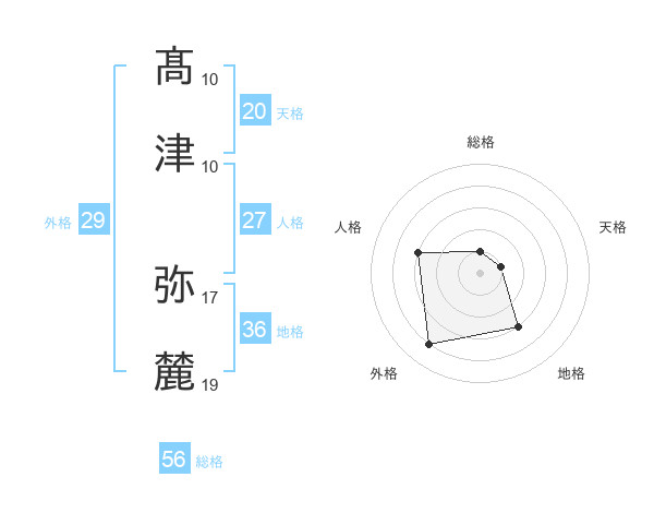 髙津 弥麓さんの総格は56画の1点!