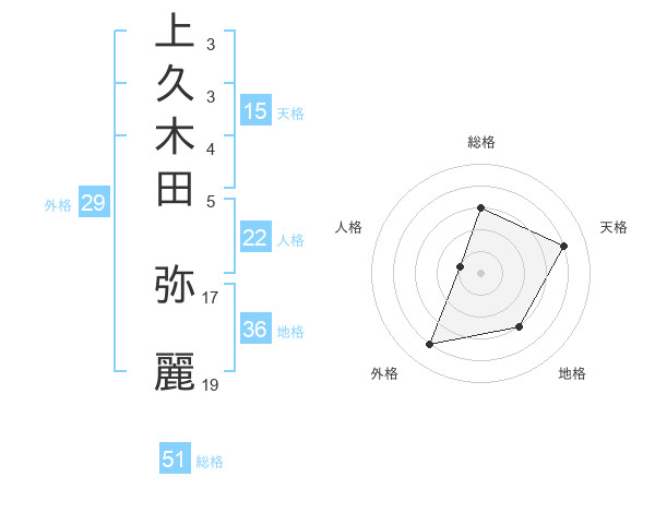 上久木田 弥麗さんを姓名の画数から五運を鑑定