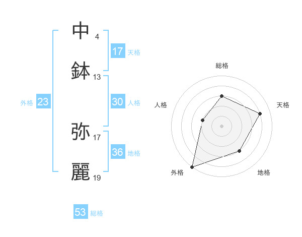 中鉢 弥麗さんの総格は53画の3点!